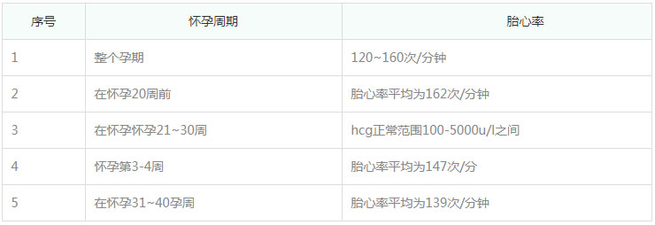 不同孕周胎心率对照表