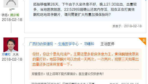 胚胎移植26天有出血怎么办?