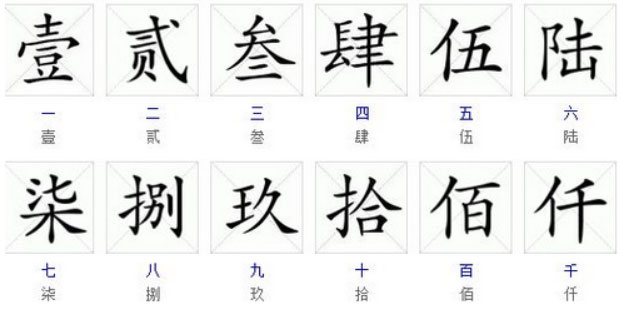 一二三四五六七八大九十大写