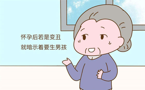 1.孕妈会变丑:怀孕后孕妈妈容貌变丑,皮肤变得粗糙,肤色暗沉,经常长痘痘的生男孩。