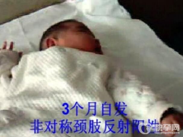 婴儿出生后会有紧张的颈部反射姿势。
