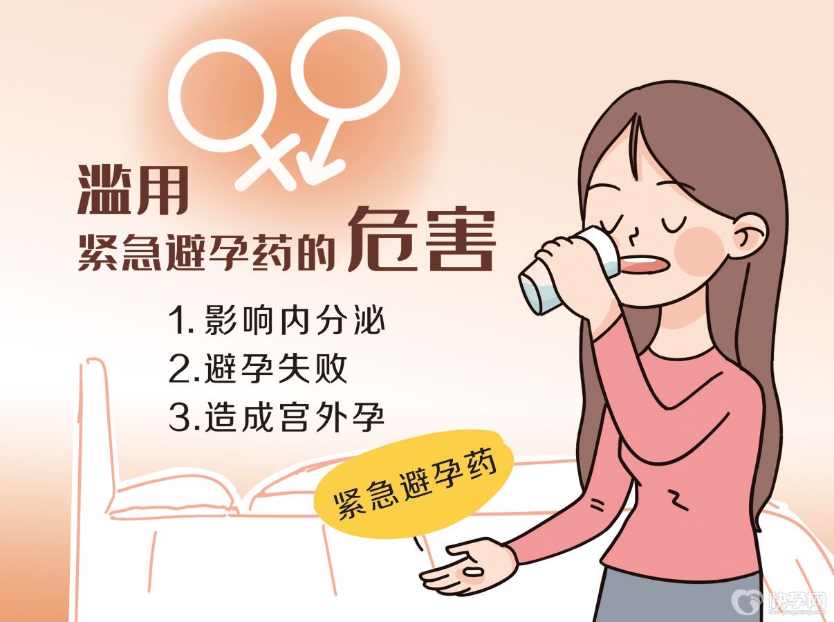频繁服用紧急避孕药,会因摄入太多外源性孕激素,影响卵巢功能,可能导致卵巢早衰,有失眠、皮肤干燥、性欲下降等表现。