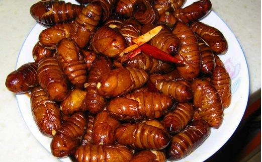 而且在我国,蚕蛹蒸煮入宴的历史已有上千年,更有七个蚕蛹一个蛋的说法,更是体弱、病后、老人及妇女产后的高级营养补品,以下这里就分享几种蚕蛹的吃法: