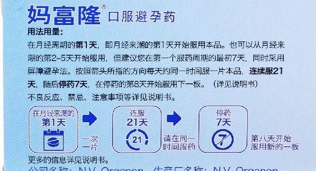 漏服处理:如果漏服在12小时之内避孕效果不会降低,一旦想起立即补服并在常规时间服用下片如果漏服超过小时避孕效果可能降低,可以按以下的建议进行漏服处理。漏服发生在第一周在您想起时立即补服漏服的药片(即使这意味着同时服用两片药),在常规时间服下一片药随后应同时采取屏障避孕(如避孕套),漏服的前天内有性生活则有妊娠的可能性。漏服的药片越多距停药期越近妊娠的危险越高,漏服发生在第二周在想起时立即补服,即使这意味着同时服用两片药然后按常规时间服用剩下的药片。