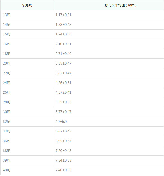 1~40周胎儿股骨长标准数值表,孕妈来对照一下吧