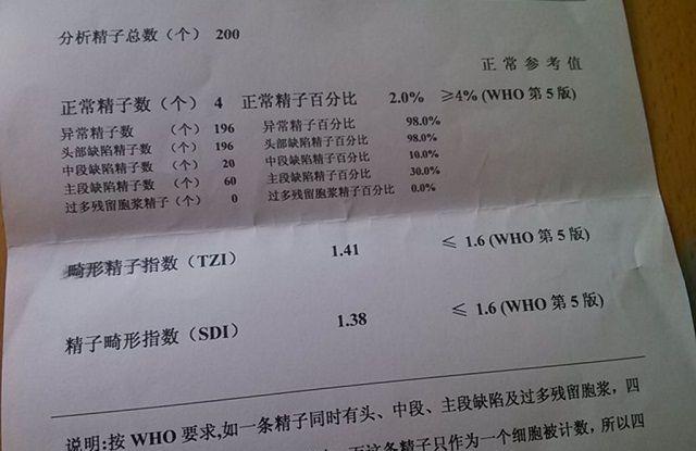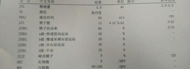 一份精子质量分析报告单,最主要的有以下几个指标:第一个是精液量,第二个是精液浓度,第三个是精子的活力,第四个是畸形率。