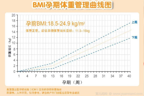 孕前BMI值在18-24间者: 体重增加范围11.516Kg孕前BMI18者: 体重可增加12.5--18Kg孕前BMI24者: 体重可增加 711.5Kg