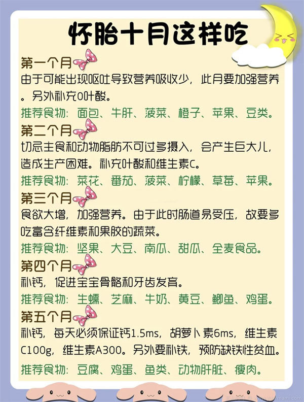 按照孕早期、孕中期、孕晚期来说,孕妈最好遵循以下标准。