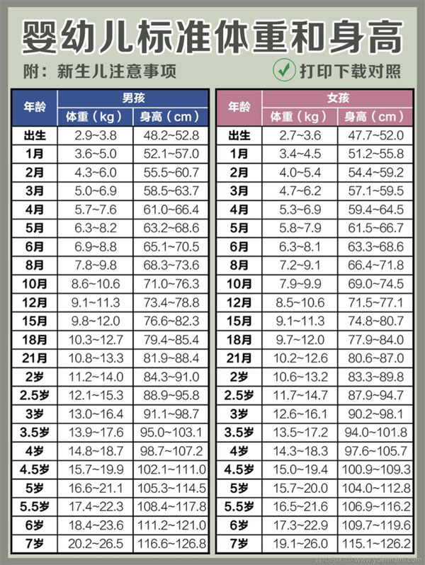 新生儿体重多少算正常?附婴幼儿标准体重对照表
