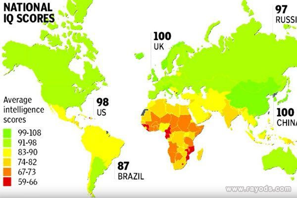 世界个地区IQ分布示意图