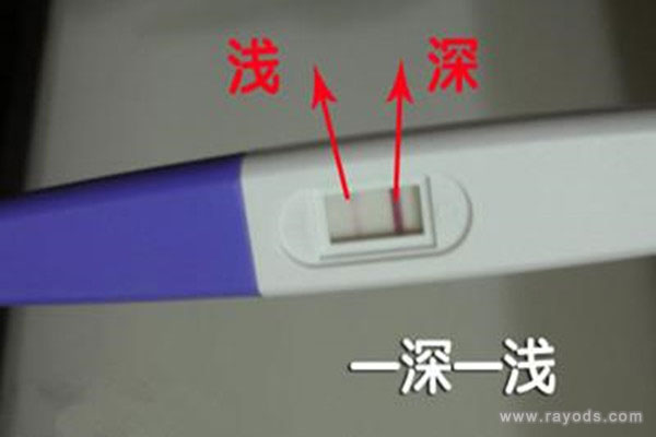 注意:验孕棒,是一种比较便利的自测怀孕工具,它的结果判定可能会出现误差,与验孕棒的质量、使用方法有很大的关系。一般验孕棒测试一深一浅的两条杠,说明孕激素变动不够明显,也或者是操作过程失误所导致,这样的检测结果是不真实不准确的,需要重新测试。
