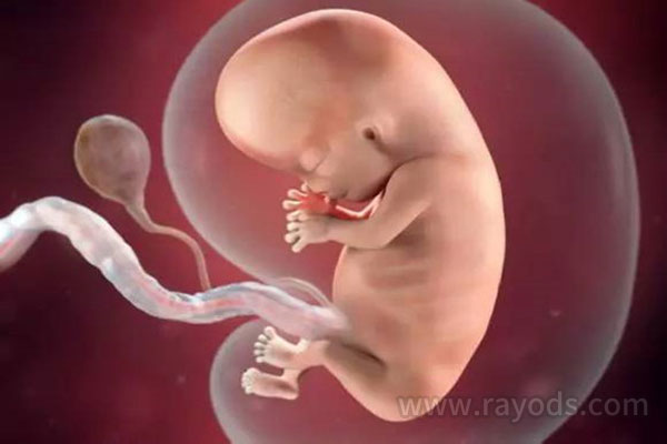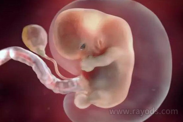 第九周:胎儿如草莓般大小,此时的身长约1.67英寸;