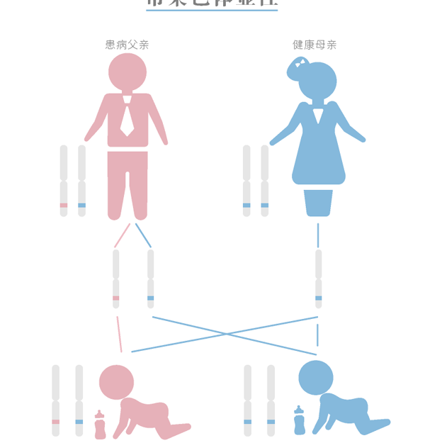 该病是常染色体显性遗传,这意味着基因中只要有一个等位基因异常就能导致该病的发生,发生该病的患者通常遗传自患有亨廷顿氏舞蹈症的父亲或母亲的基因。