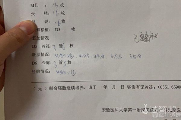 终于,我在12天的药物促排卵后,共取出19颗卵子,其中有3颗优质、适合胚胎移植的胚胎。试管医生综合考虑我的身体情况和我们夫妻俩意愿后,为我胚胎移植了两枚胚胎。并在14天后验孕成功,成功圆梦!在此衷心要感谢安徽医科大学第一附属医院 我的主治医生,和耐心引导我的护士小姐姐,是你们的专业和体贴,让我在试管过程少了很多担忧和害怕,才顺利有了这次试管的成功。