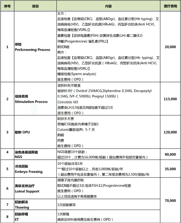 1.泰国试管婴儿费用清单