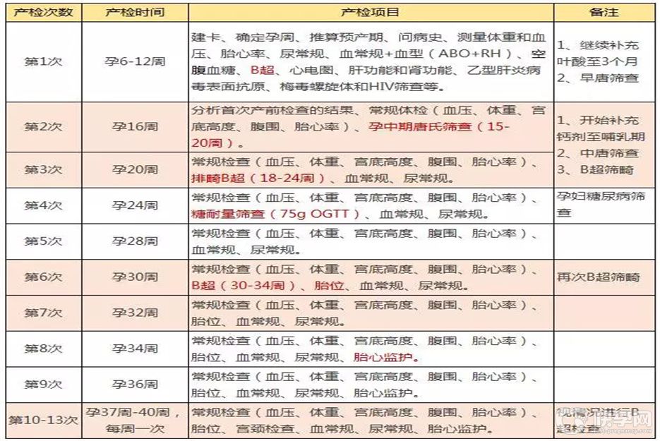 史上最全的孕期产检时间表和项目,看完记得收藏哟