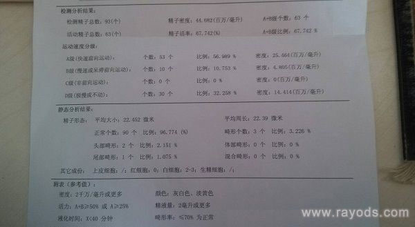 精液检查报告反应多项指标