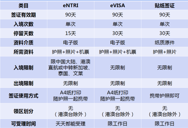 eNTRI、eVISA、贴纸签证的区别