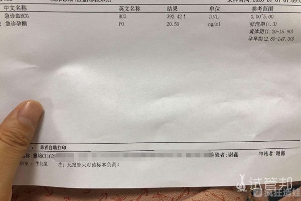 第二天早上,早上的尿检已经是浅粉色。第十一天,第十二天,也很顺利,第十四天天,去医院抽血了,确认怀孕了。就是想给做试管的姐妹们打气。第三代试管婴儿不是我们想象的这么难,好的心态对结果影响也很大。