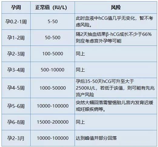 怀孕hcg正常值对照表
