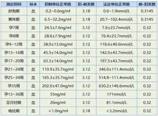 各个阶段孕酮和hcg的正常值对照表
