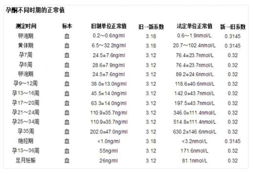 孕酮参考值