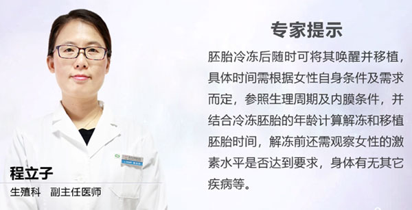 依照冷冻时的胚胎不同其解冻后再移植的时间也会不一样,比如冷冻时是第三天的胚胎,需按照排卵后第三天的日期进行解冻和移植,若冷冻的是第五天的胚胎,需推迟两天解冻,才可达到胚胎与内膜发育的同步性,提高妊娠率。