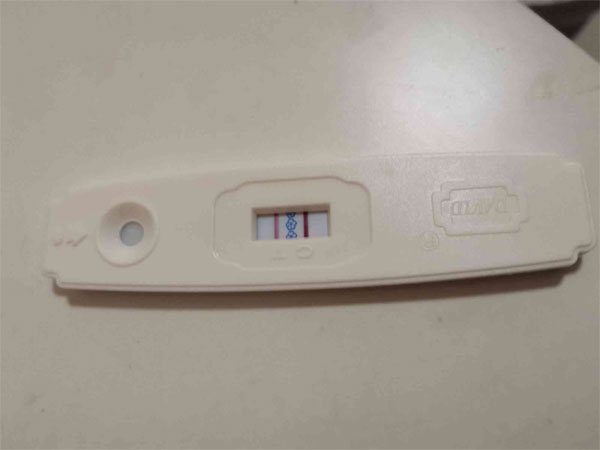 3. 第三步:等待时间到达后就观察结果,一般来讲,如果出现两条杠比较深或者一深一浅都是怀孕,如果出现一条杠需要根据说明判断线所在的位置是表示验孕棒失效还是未怀孕;