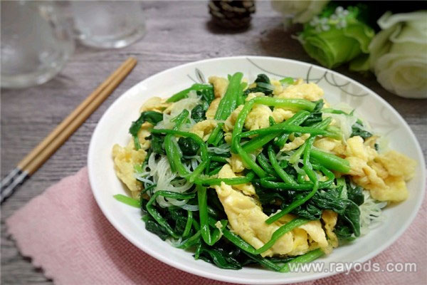 二、菠菜鸡蛋拌粉丝