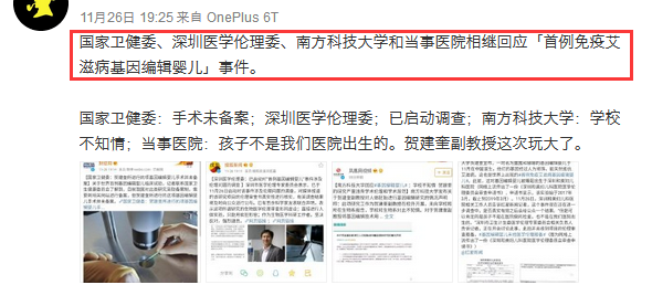 2、深圳市医学伦理专家委员会:将启动对该事件涉及伦理问题的调查。