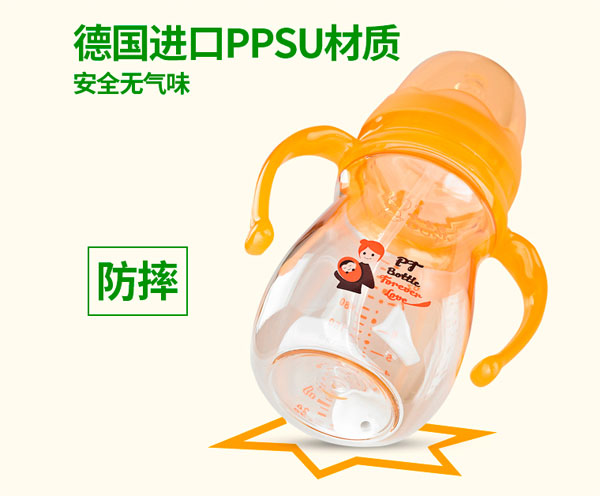 2、耐摔性:旗下ppsu耐摔奶瓶不易损坏,用刀刮锤子打都难以留下划痕,避免了普通奶瓶易碎的尴尬局面;
