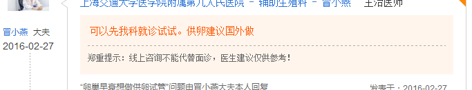 上海九院辅助生殖科医生冒小燕建议国内患者赠卵生育考虑国外