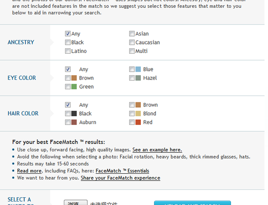这个就非常厉害的,直接上传你喜欢类型人的正脸照来筛查与Fairfax精子库捐赠者相似的人,选择照片时请避免面部旋转、沉重的胡须、厚边框眼镜、帽子等。