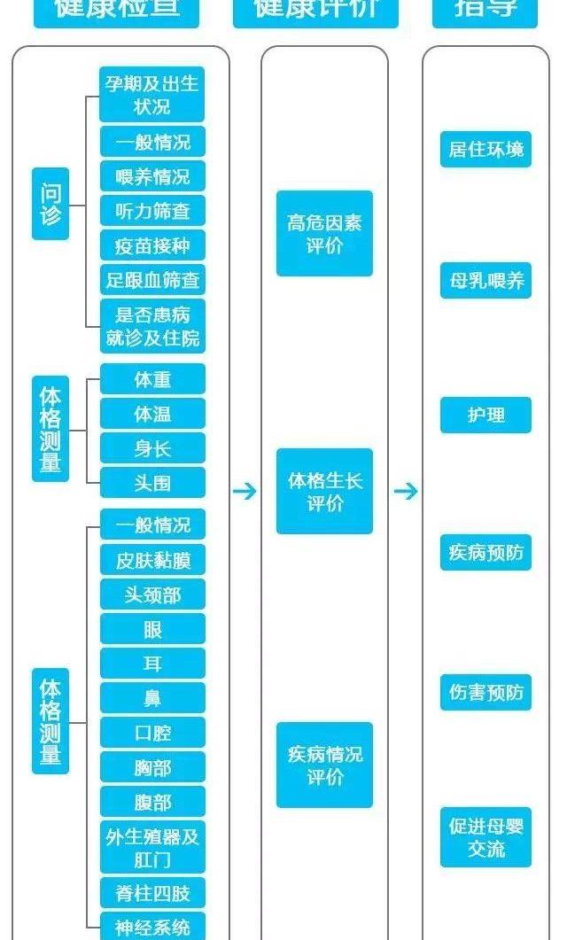 新生儿检查大概分为健康检查(问诊、体格检查)、健康评价、育儿指导,看似简单的问诊、触诊、听诊,对于刚出生宝宝来说很重要,也正是开启了对宝宝发育的监测与管理。