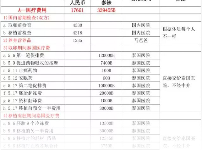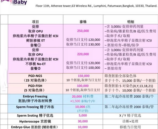泰国iBaby爱宝贝试管费用清单