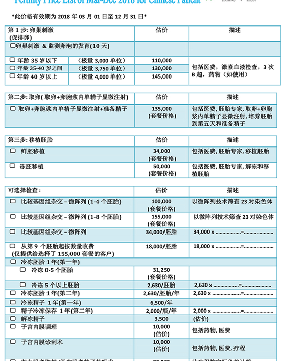 以上价格有效期截止到2018年12月31日,受到年龄的影响帕亚泰试管婴儿费用可能会有所变化,以上价格仅供参考,实际价格以医院为准。