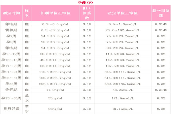 孕酮标准