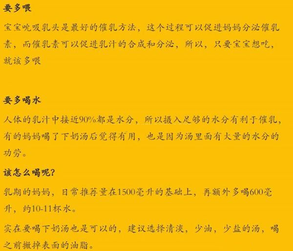 宝妈分享:多喝温水,能多喝尽量多喝,慢慢吞咽,要让胸部感觉到暖流。吸奶前中后各250ml,建议用吸管喝,多休息,多睡觉,让身体得到休息和放松。心情好雌激素高,泌乳素就多产奶量自然多起来。
