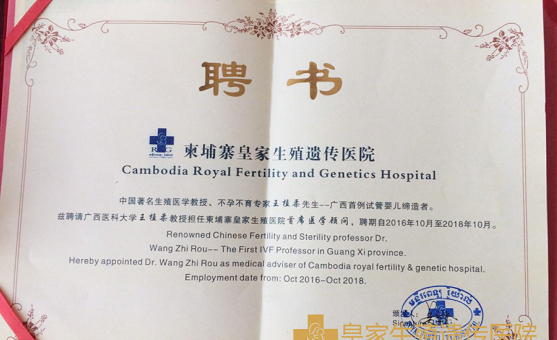 王植柔教授是RFG皇家医院的首席医学顾问,它是广西医科大学教授、博士生导师,更是广西生殖医学的奠基人,曾主持开展过广西首例试管婴儿和单精授精-胚胎移植。