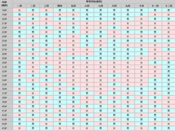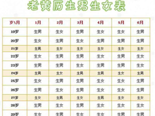 老黄历生男生女表介绍的是女人19到41岁的老黄历生儿生女预测图,老黄历生男生女表用横向的1-12代表女性怀孕月份,以农历计算,纵向的19-41代表孕妇的年龄,以虚龄计算,孕妇根据自己的年龄和怀孕月份在老黄历生男生女表中查询,找到对应坐标即可知道是生男还是生女。