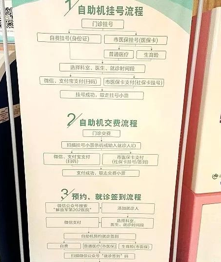 2、自助就医:门诊各楼层均设有自助就医机,可自助实施挂号、预约挂号、缴费、查询、检验报告打印等功能。自助就医机旁有专人指导操作,需要本人提供身份证、门诊病历、医保患者提供医保卡,方可实现自助就医各种功能。