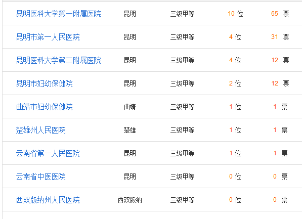 省市 医院 地址 云南 云南省第一人民医院 云南省昆明市西山区金碧路157号 云南 大理大学第一附属医院 云南省大理白族自治州大理市嘉士伯大道32号 云南 昆明医科大学第二附属医院 云南省昆明市五华区滇缅大道374号 云南 楚雄彝族自治州人民医院 云南省楚雄彝族自治州楚雄市鹿城镇荷花村 云南 曲靖市妇幼保健院 云南省曲靖市麒麟区珠江源大道延长线与纬六路交界处 云南 昆明市妇幼保健院 云南省昆明市西山区丹霞路2号 云南 云南省第二人民医院 云南省昆明市五华区青年路176号 云南 昆明爱维艾夫医院 云南省昆明市经济开发区云景路园博园内 云南 云南九洲医院 云南省昆明市盘龙区联盟街道白云路229号 云南 甘美国际医院 云南省昆明市盘龙区北京路1228号