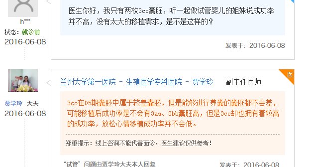 3cc属于较差囊胚,但是并不代表不会成功,3aa囊胚也并不代表着100%成功率,所以即便是3cc囊胚移植者在术前需要信心,这样才是事半功倍,这样才有可能让你成为下一个3cc囊胚成功案例。