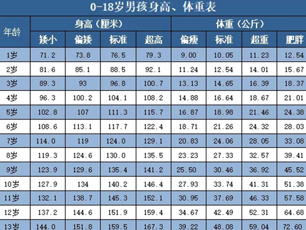 2022年1-12岁男孩身高标准对照表,对比看是否达标!