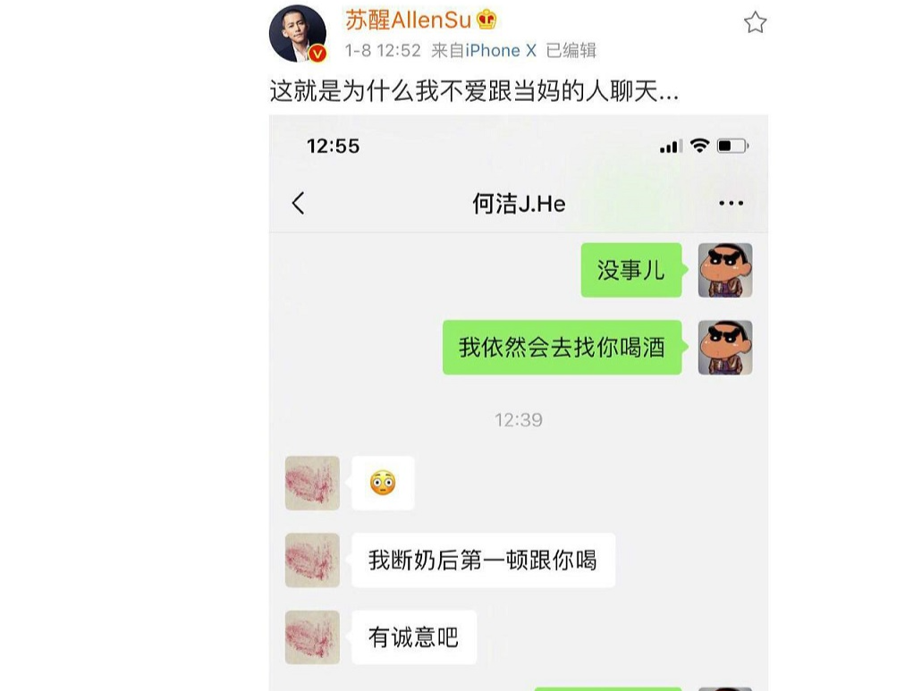 而苏醒晒出与何洁的聊天截图,曝光了何洁目前已生三胎的消息,而刁磊朋友圈曝光一个婴儿趴在他背上,并配文到“做你们一辈子的依靠”。