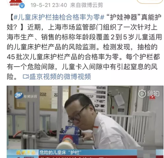 儿童床护栏抽检合格率为零