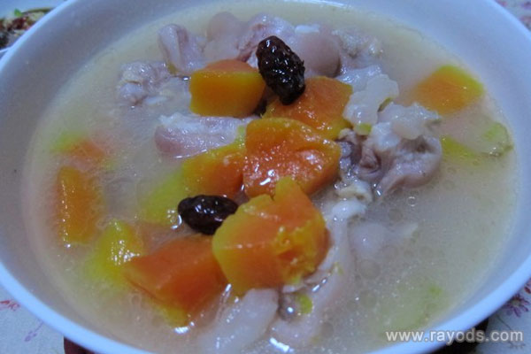 注:此款营养价值丰富,猪脚中含有大量的胶原蛋白,在烹饪过程中转化为明胶,能够改善肌肤组织细胞的储水功能,让皮肤光滑有弹性。木瓜的营养成分