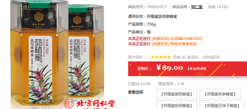 同仁堂益母草蜂蜜89元一瓶