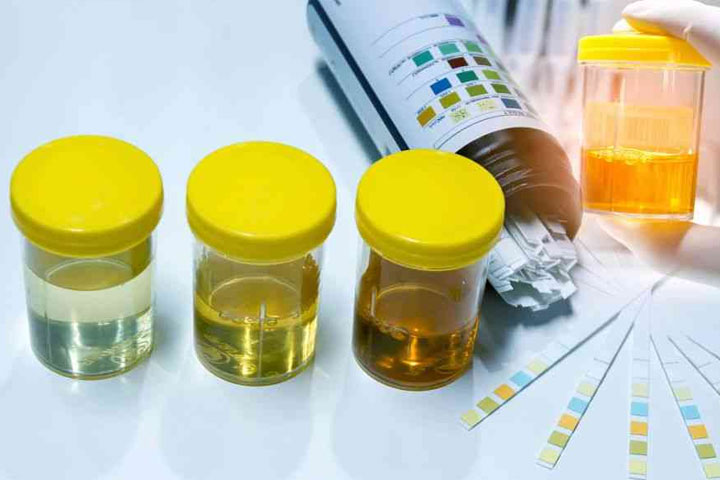 收集早晨的第一次尿液放入量杯,再用注射器从量杯里取20毫升尿液注入测试杯,混合其中的化学物质发生反应,然后平放并旋转测试杯。