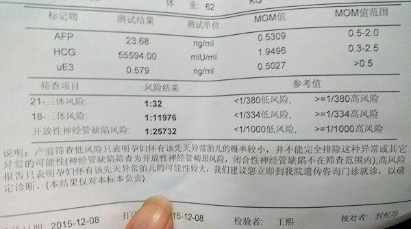 3、AFP的mom值小于1,且hcg的mom值大于1时是女孩;